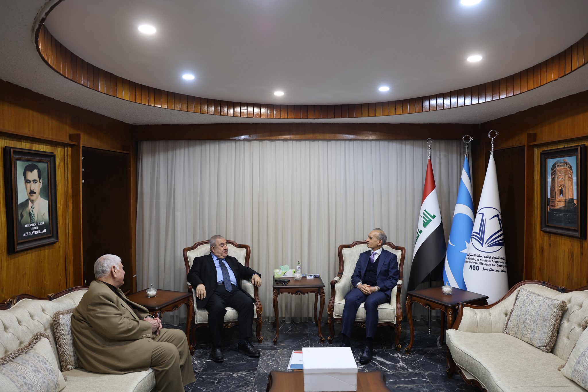 السيد حسن توران الأكاديمي يستقبل البرفيسور الدكتور صبحي سعاتجي، الذي يزور مدينة كركوك،